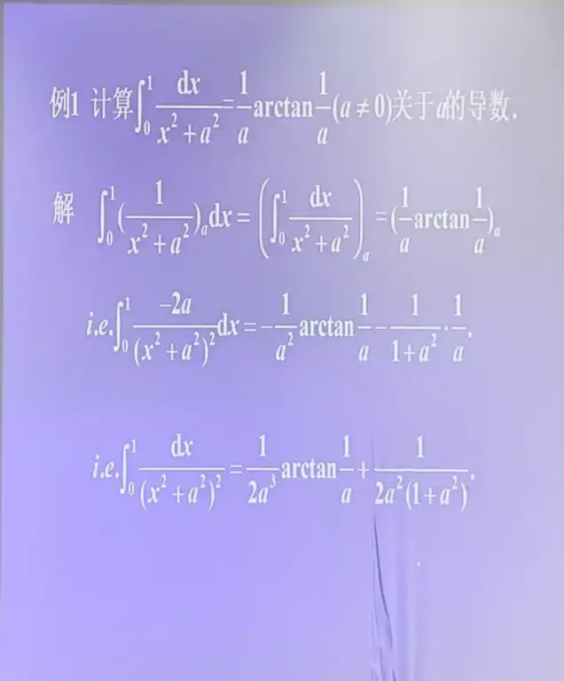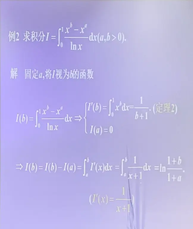 定理 和 f 的 x 偏导数都连续,那么含 x 参数的积分是可导的,并且积分的导数等于先求偏导再积分 含参积分求导