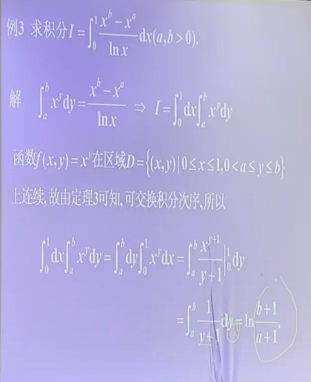 可以引申出方法:当被积的二元函数连续的时候,极限符号可以和积分符号交换顺序