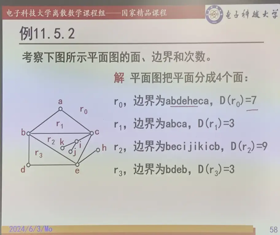 包围该面的边构成的 回路 称为 面的边界,边界的长度称为 次数