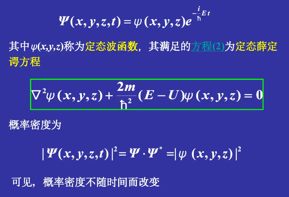 括号里面是两对共轭物理量 要记住 iℏ∂t∂Ψ=H^Ψ 左边是一个和时间有关的函数,右边则是和坐标相关的函数。若两边相等,只能同时为一个常数 设为 E 平方后 exp 项结果为 1,故概率密度结果取决于小 ψ