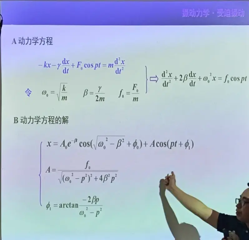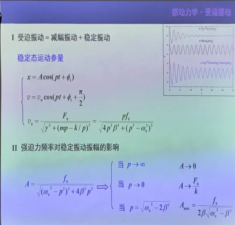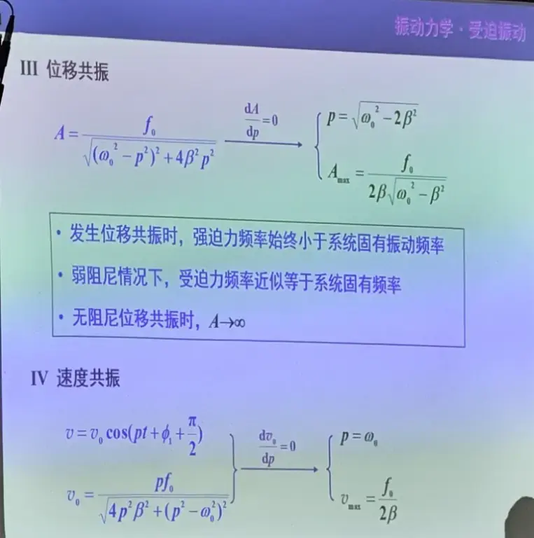 当 非常小的时候,受迫运动频率近似于固有频率的时候振幅最大