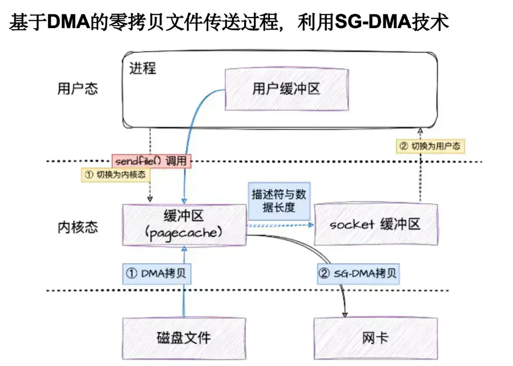 为了消除内核产生的素有数据冗余,需要网络适配器支持聚合操作特性。该特性意味着待发送的数据不要求存放在地址连续的内存空间中;相反,可以是分散在各个内存位置。