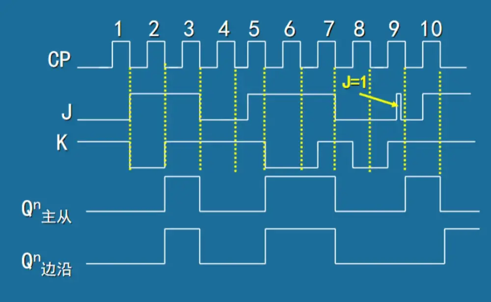 下降沿触发(时钟是提前的,JK 输入端和时钟同时变化的时候,看前面一点的)