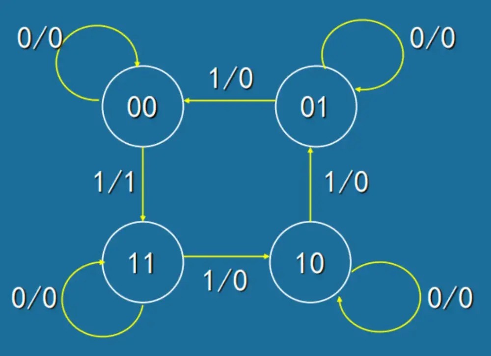 圈输出的卡诺圈的时候,圈 1 时圈到 d 结果就是 1,可能有误输出问题。如果全部不圈,那就次态一定到 00