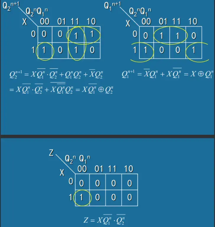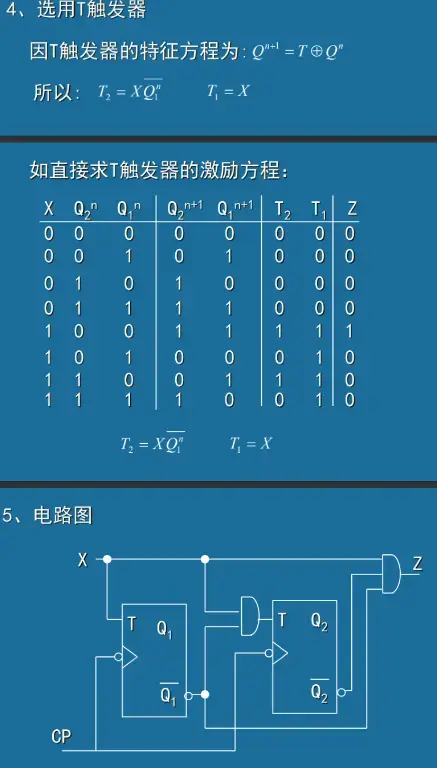 试设计一个两位的二进制减法计数器,由输入 X 控制,X=0 状态不变;X=1 在 CP 的作用下作减法计数。当产生借位时,计数器借位位 Z=1,其它情况 Z=0