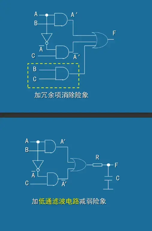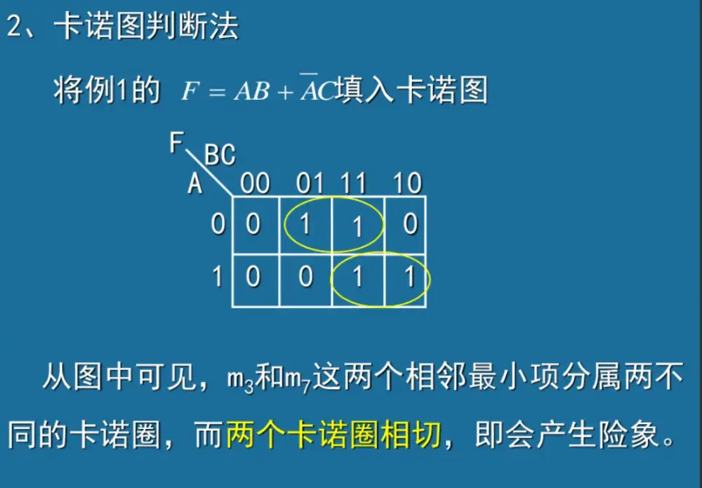 判断方法:对每一个变量查看,看前面的与有没有机会产生险象(一正一负,前面同时能为 1),如果可以就把同时为 1 的拿出来放一个与项里面就行