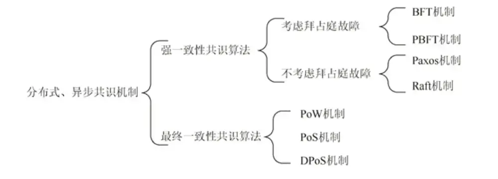 强一致性共识算法主要用于节点较少且一致性要求高的私有链或联盟链,典型机制包括 BFT、PBFT、Paxos 和 Raft,具有较高安全性但复杂度高;最终一致性共识算法适用于节点众多且难以实现完全一致的公有链,典型机制有 PoW、PoS 和 DPoS,去中心化程度更高但安全性略低,其中比特币采用的是 PoW 共识机制。