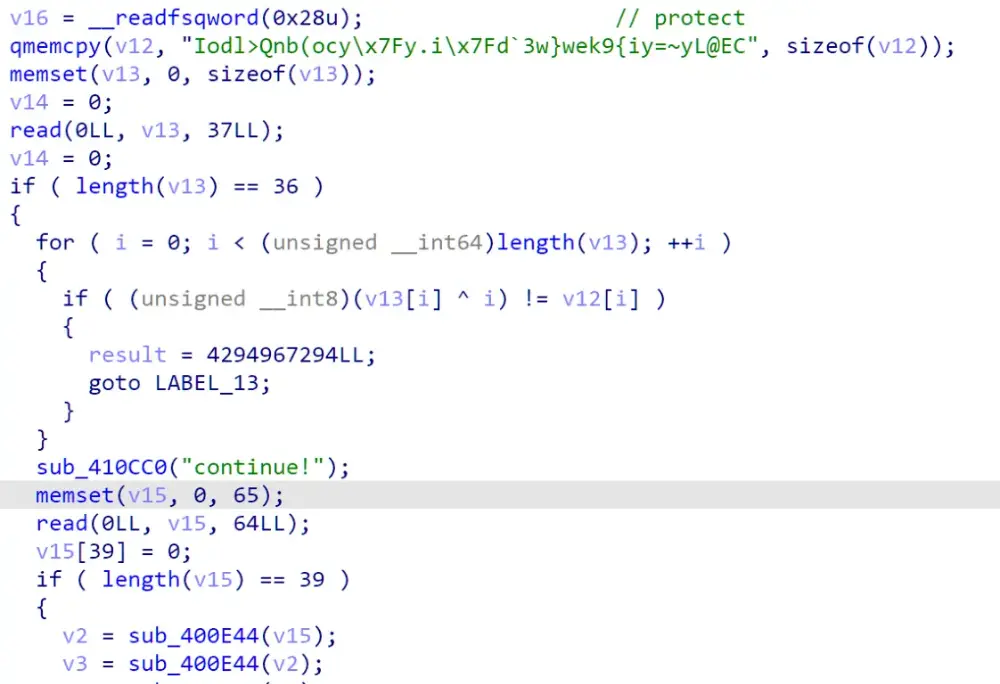 if ( sub_424BA0(v15) == 36 ) 这行猜测是检测字符串长度是 36,对长度重新分配(Y)