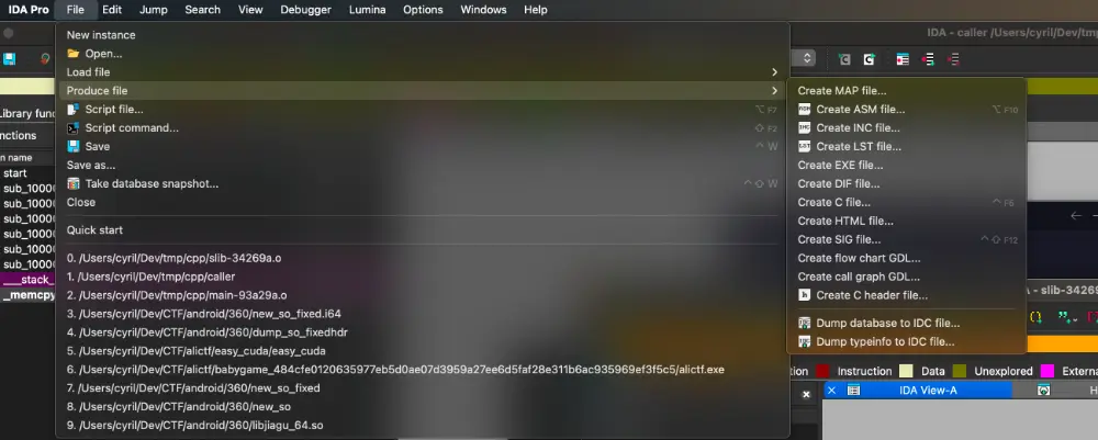 这个方法我在 ida9 里面找不到对应的文件了,官方告诉我们其实可以直接通过打开 ida 界面导出,达到将这些信息移植到较新的二进制文件的目的