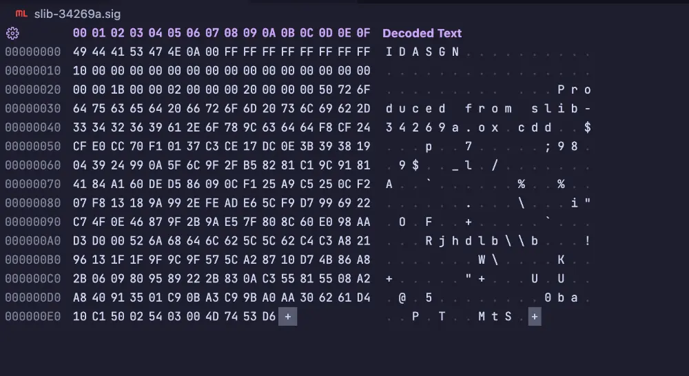 - 不存储原始字节:签名文件仅包含函数名、变体字节标记和 CRC16,不泄露原始库的代码内容。
