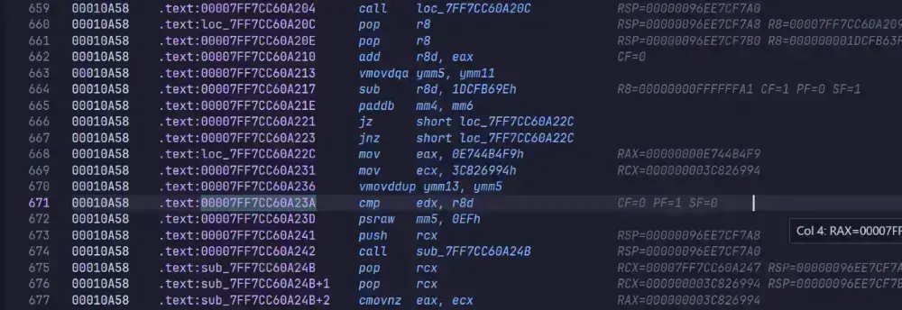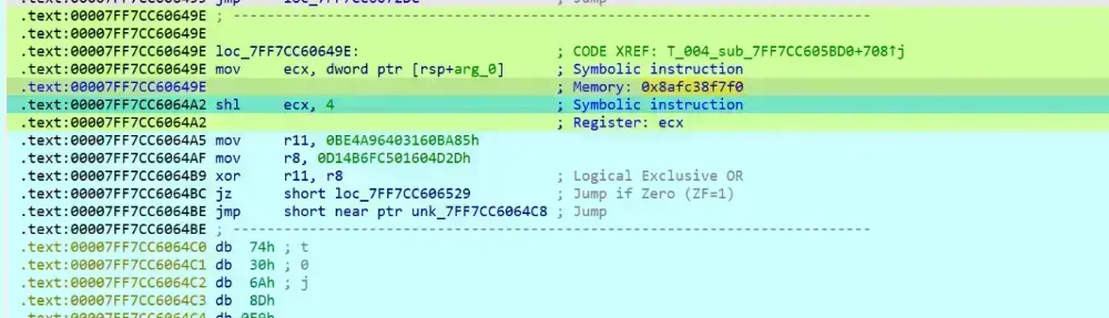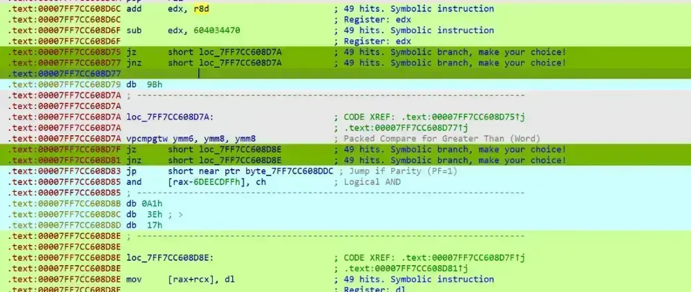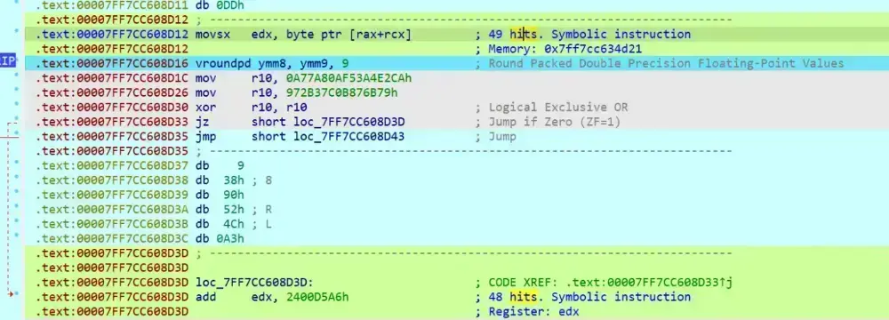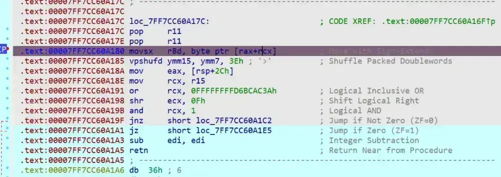 在这里比较最后一位,往前溯源,得到密文(其实就是 data 段的开头,猜的话应该也是猜放在这)
