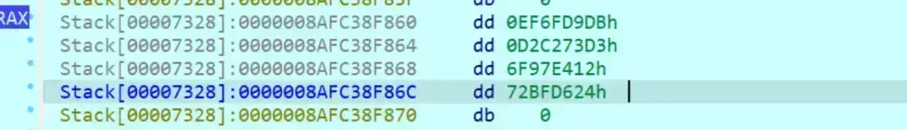 uint32_t key[4] = {0x0EF6FD9DB, 0x0D2C273D3, 0x6F97E412, 0x72BFD624};