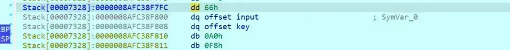 在返回的时候查看栈帧,可以看到参数的传递(硬件断点)