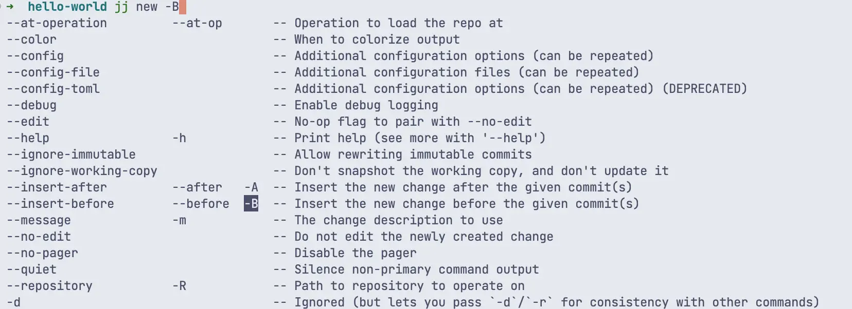 在 git 中,我们通过提交完成代码变更集,而在 jj 中,我们通过创建变更来开启新工作,再修改代码。相比事后编写提交信息,先写出预期变更的初始描述,再在工作中逐步完善,这种方式更为实用。