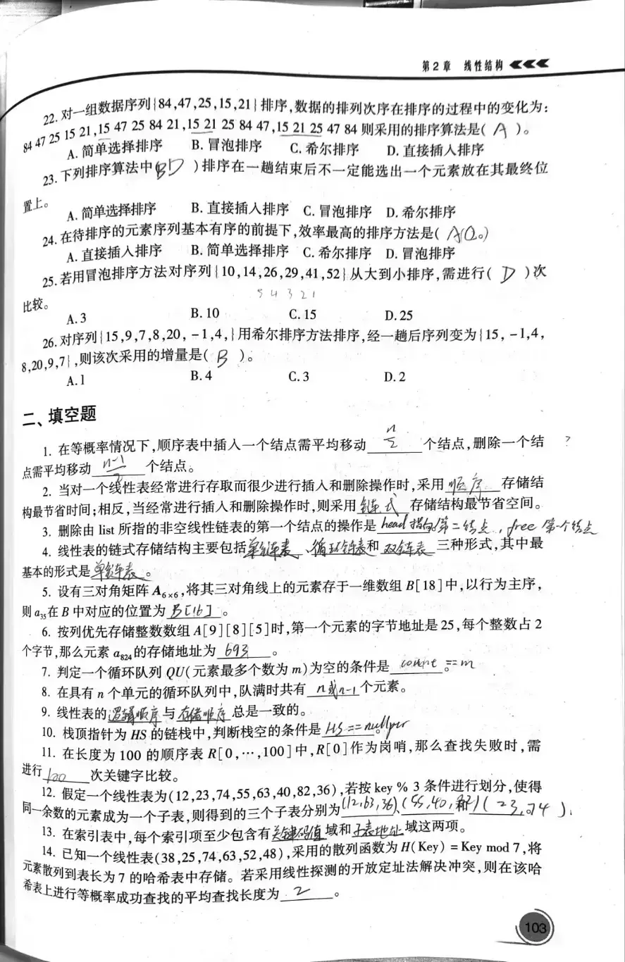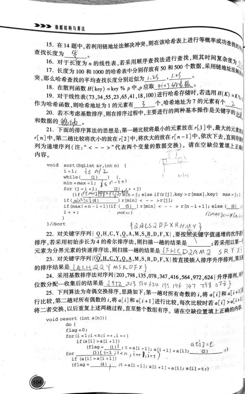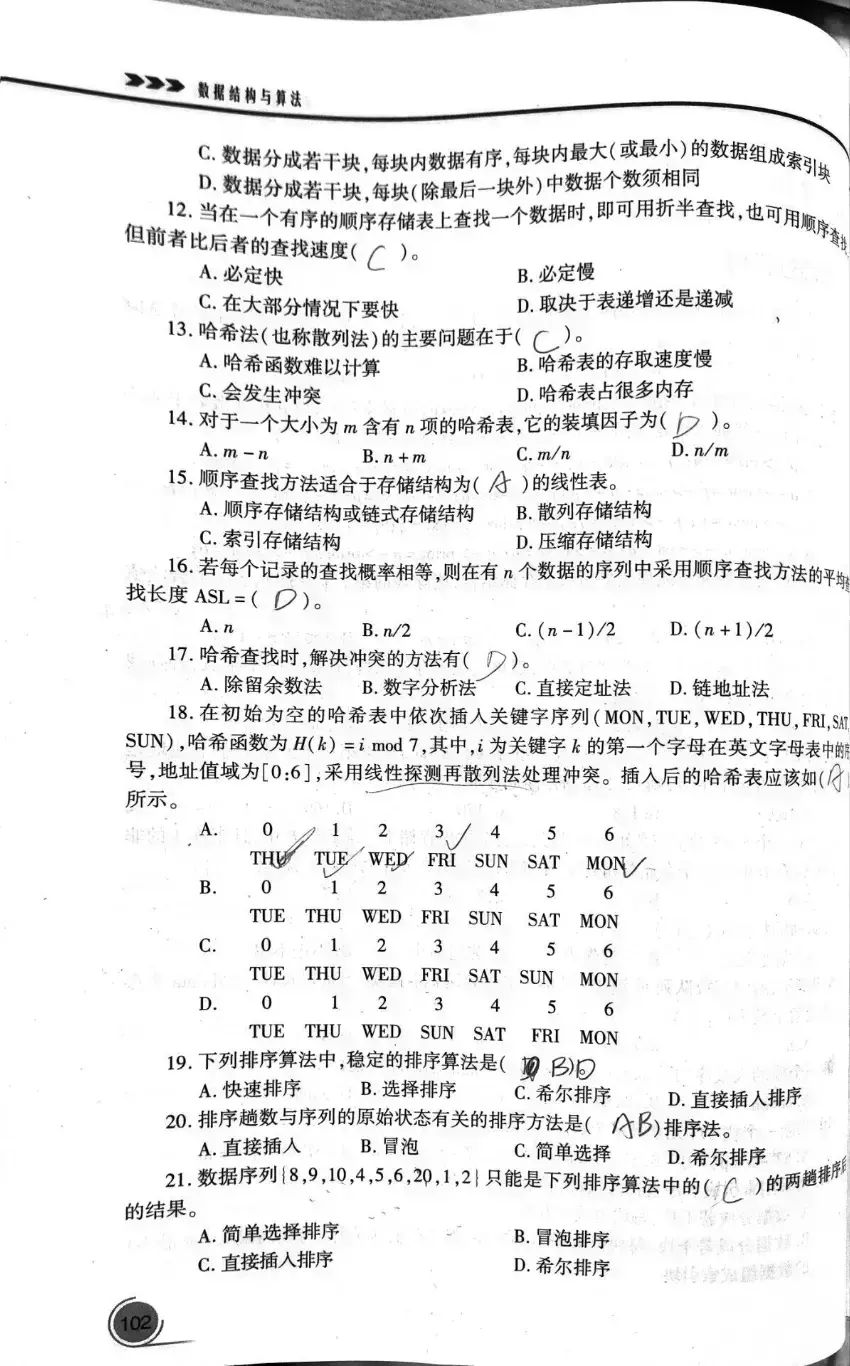 数据表 A 的关键码互不相同,且之间可以比较