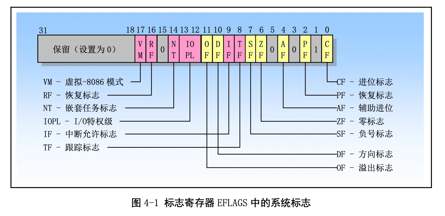 OF: 溢出标志位。记录了有符号运算的结果是否发生了溢出,如果发生溢出 OF=1, 如果没有 OF=0;