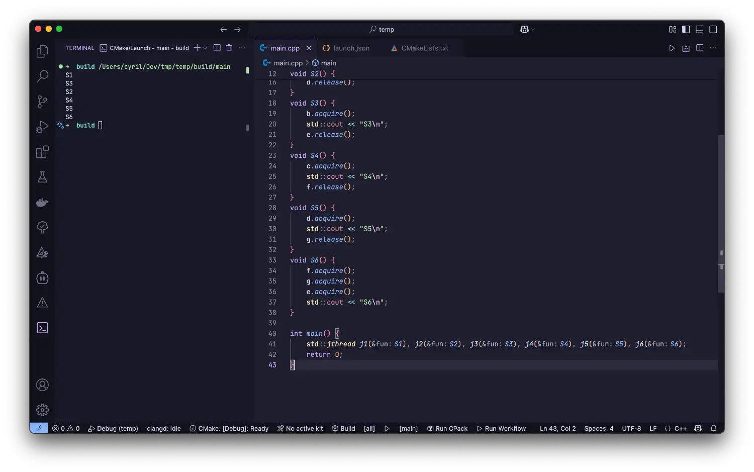 std::jthread j1(S1), j2(S2), j3(S3), j4(S4), j5(S5), j6(S6);