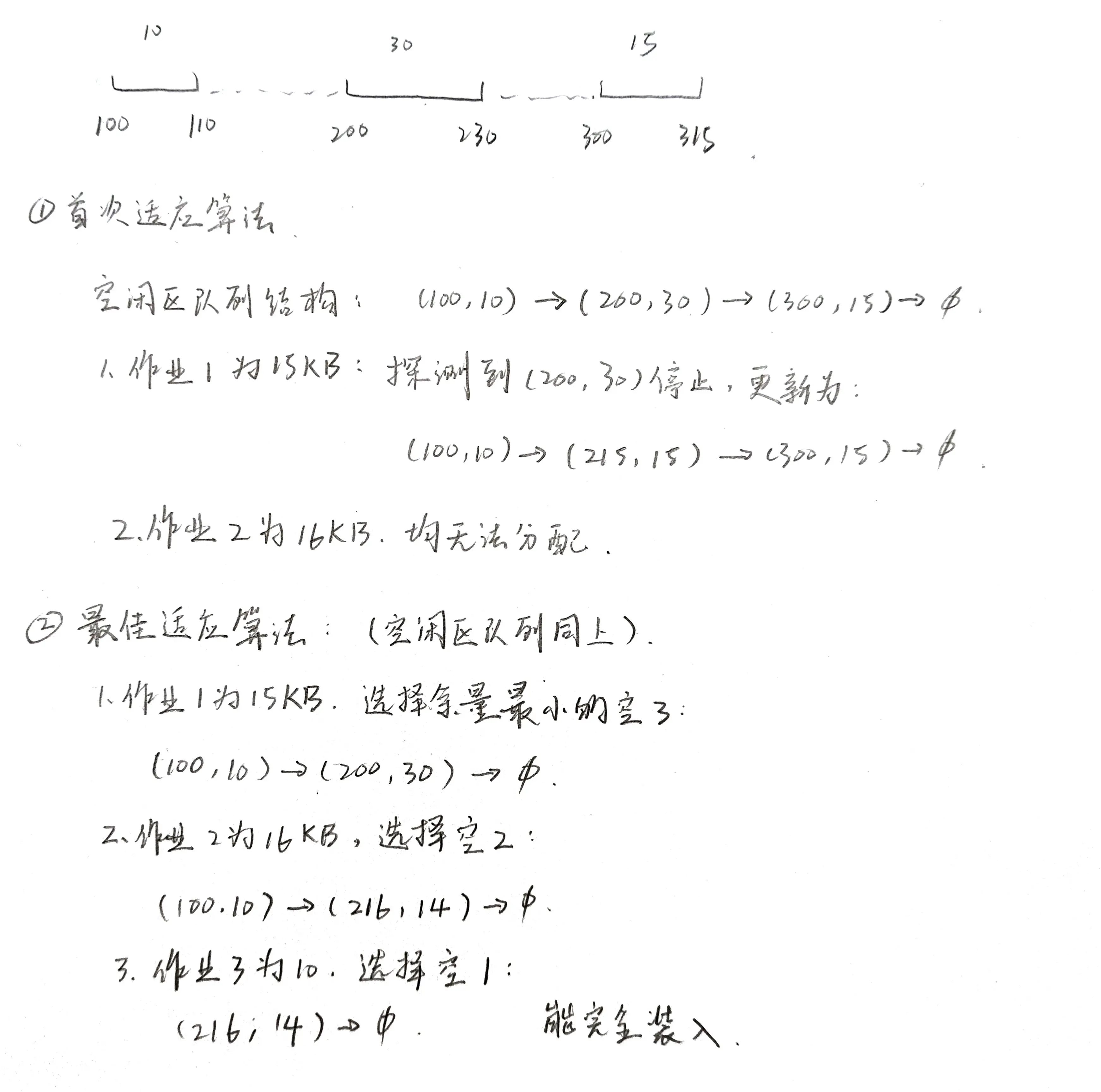 - 用首次适应算法和最佳适应算法画出此时的自由主存队列结构