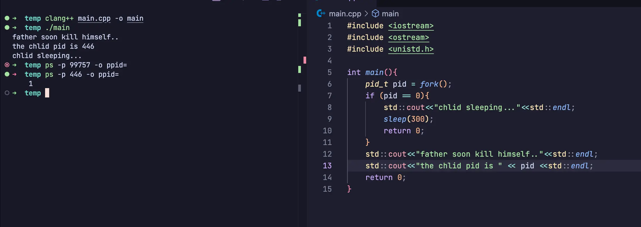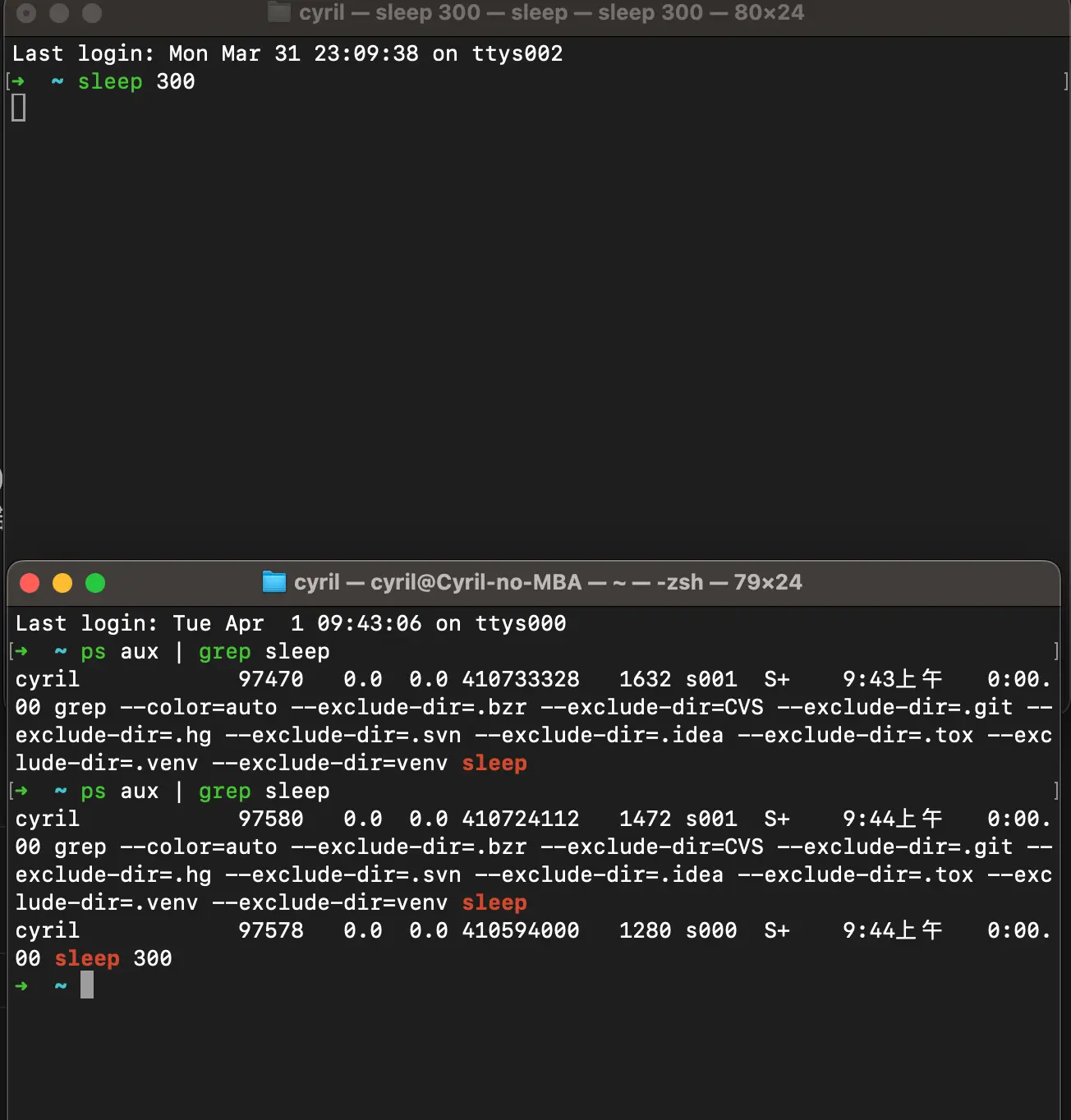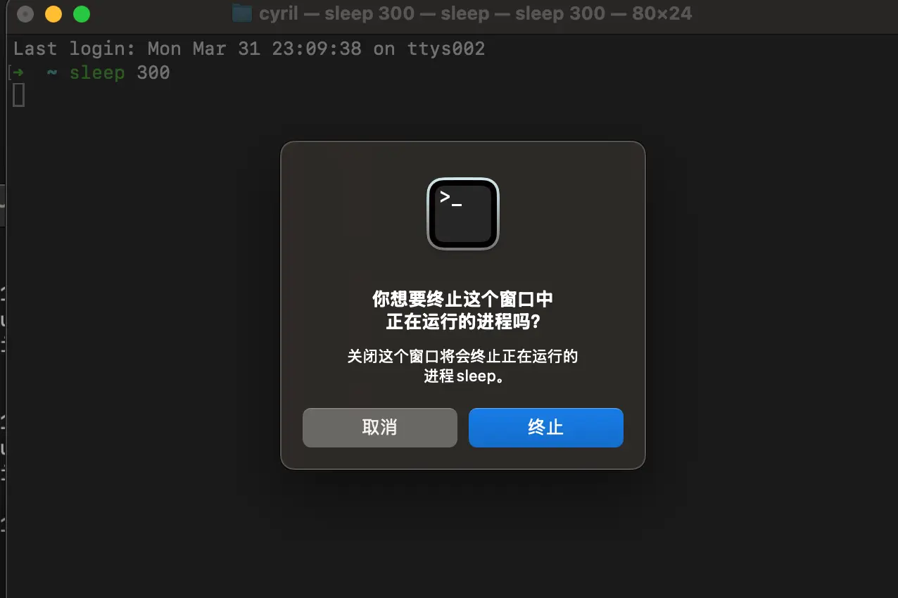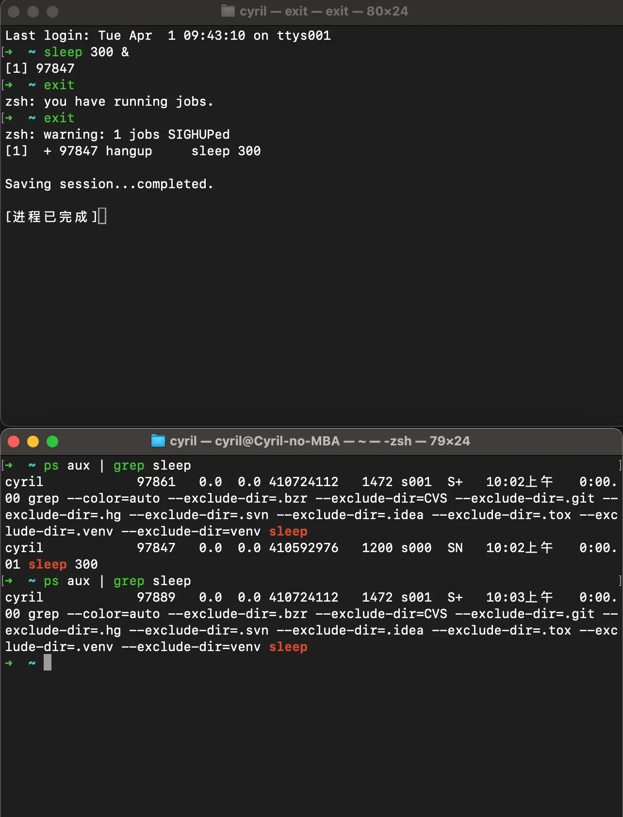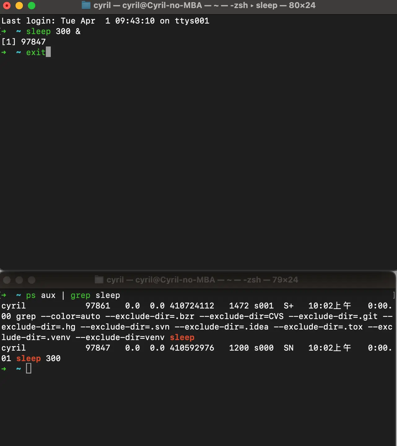 - 孤儿进程被接管:父进程正常退出之后,子进程被操作系统的内核 init 线程(macOS 中为 launchd pid=1)接管,成为孤儿进程