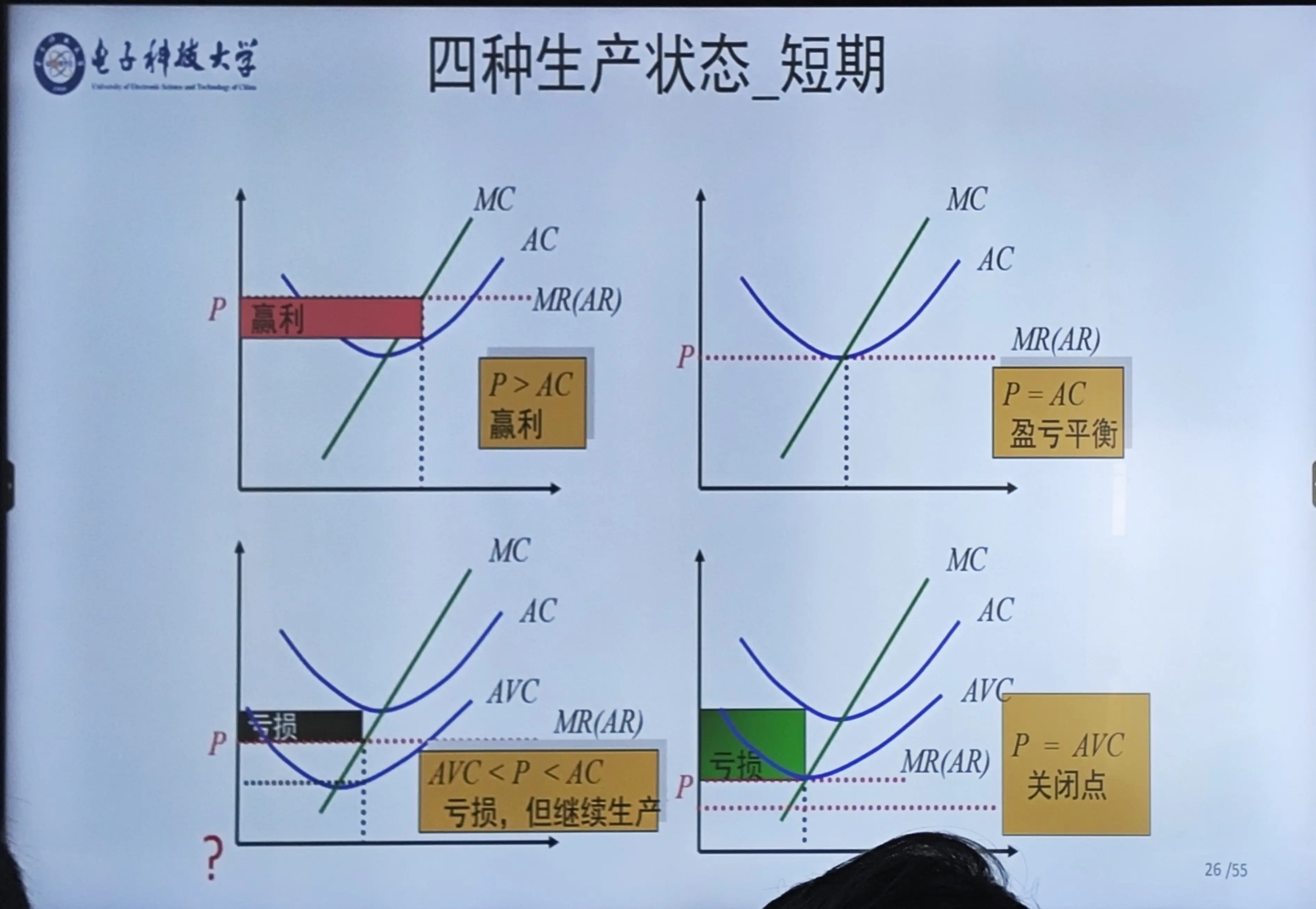 - 短期指的是只能够改变一些变量,有一些因素是不能够改变的时候(来不及)。