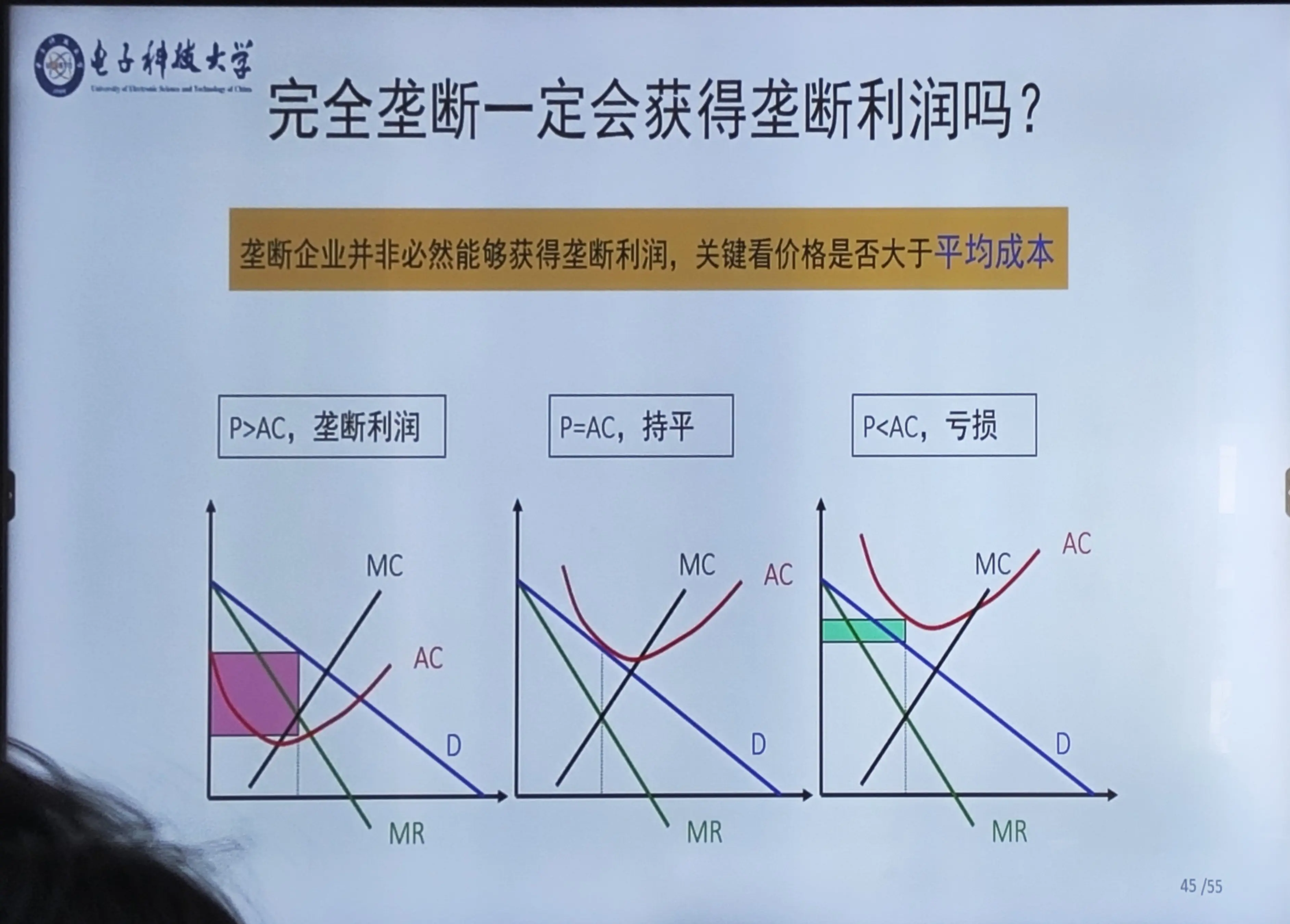 为什么亏损了还要继续生产?因为在短期内,固定成本(AC - AVC = AFC)是必须支付的,即使停产也得付。如果继续生产,虽然价格 P 低于 AC,但 P 高于 AVC,这意味着厂商每卖一单位产品,不仅能弥补全部的可变成本,还能额外赚取一部分钱来弥补固定成本。如果停产,那么厂商将损失全部的固定成本。而现在继续生产,亏损额是小于固定成本的。所以,为了减少损失,厂商会选择继续生产。用大白话说就是“少赔就是赚”。