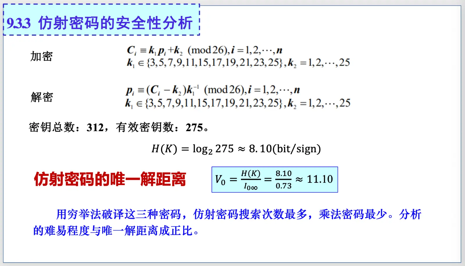 时,密钥完全被确定了。经验上,要达成这个效果,C 的长度 可以用下面的公式估算: