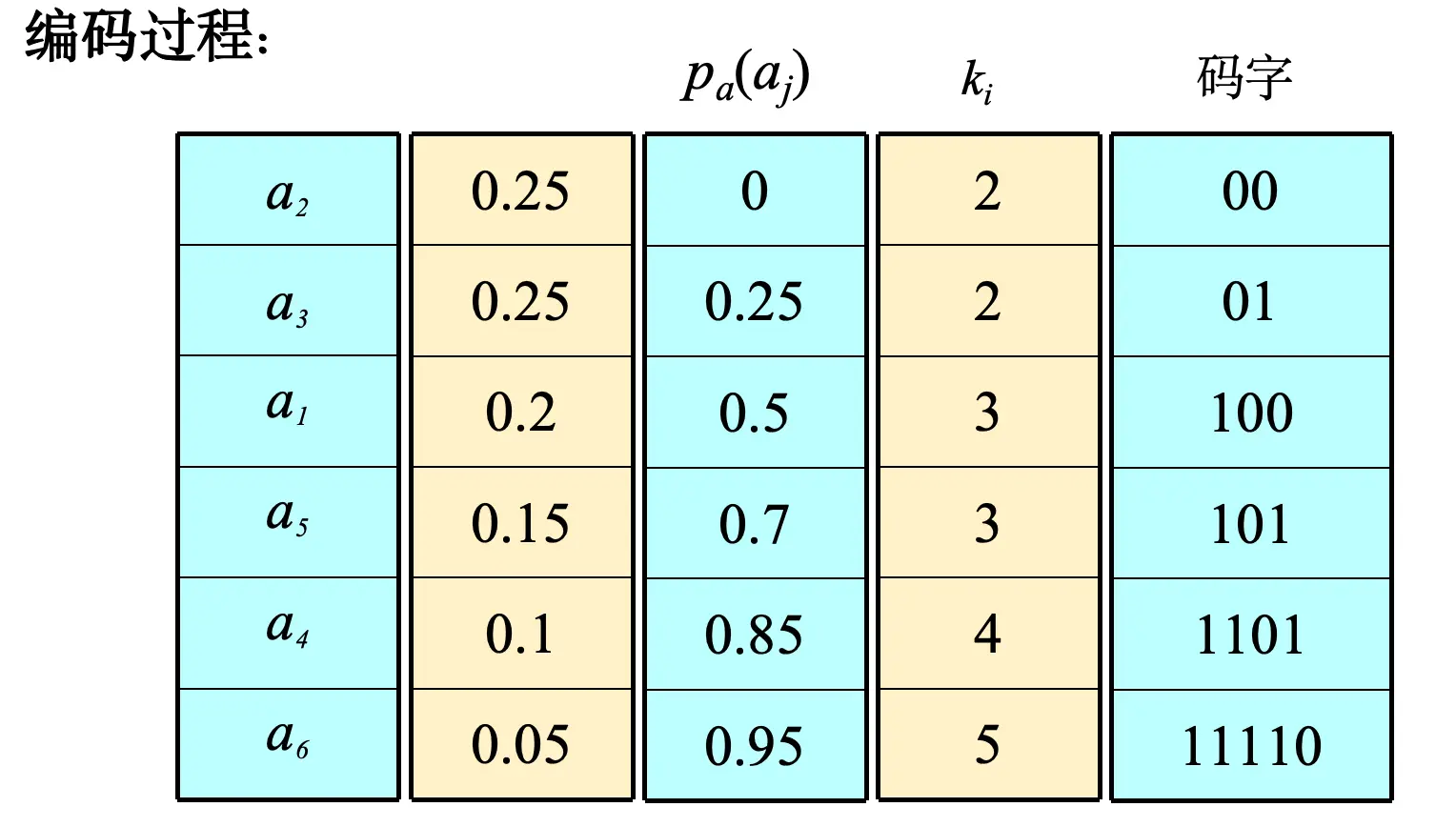 香农编码的编号是从 开始,使用累加概率(加到 j-1 而不是 j)